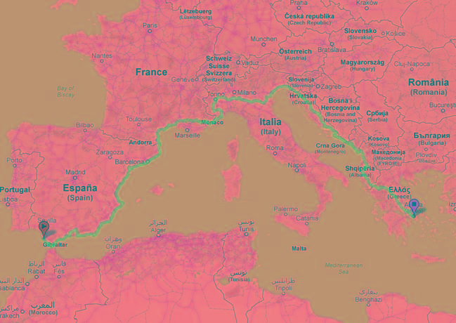Una pista ciclabile che si sviluppi tra i paesi del Mediterraneo collegandoli tra loro da Cipro a Cadice attraverso Torino