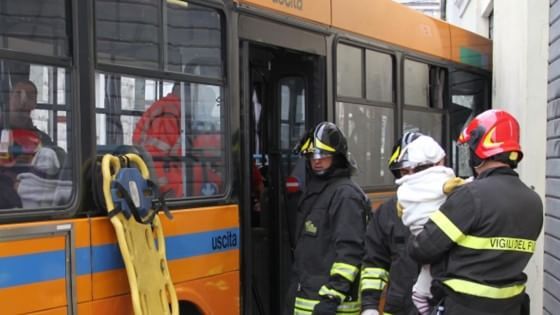 La corsa di un mezzo della linea extraurbana Atma che viaggiava in direzione centro termina contro uno stabile in via XXIX Settembre. Tra gli otto passeggeri ricoverati, sei in codice rosso, anche un bambino di due anni che era in braccio alla mamma. Forse un'improvvisa sterzata dell'autista per evitare un'auto che aveva invaso la sua corsia e l'asfalto viscido all'origine dello schianto
